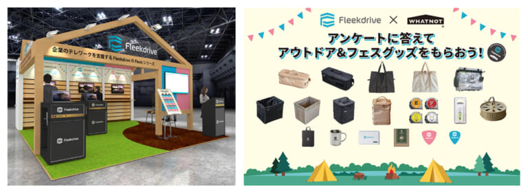 「企業のテレワークを支援するFleekdriveのFleekシリーズ」と題し、コロナ対策、育児・介護問題などの働き方に関わる諸問題を解決するテレワークを実現するクラウドサービスをご紹介します。ブース内では、セミナーセッション、各サービスのデモをいたします。また、アンケートにお答えいただいた方には、テレワーク実現のひとつの形であるワーケーションにちなんだ、アウトドア&フェスグッズをご用意しております。是非、(株)Fleekdriveのブースにお立ち寄りください。
